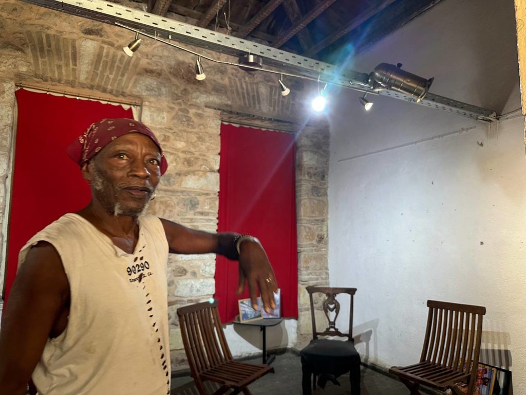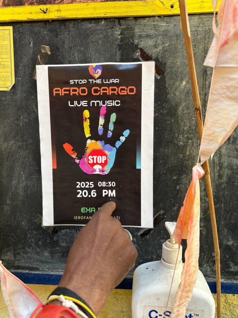 Elderdiery Mohamed Fadul is a performance artist that lived in the area of Metaxourgeio, he is musician and painter.