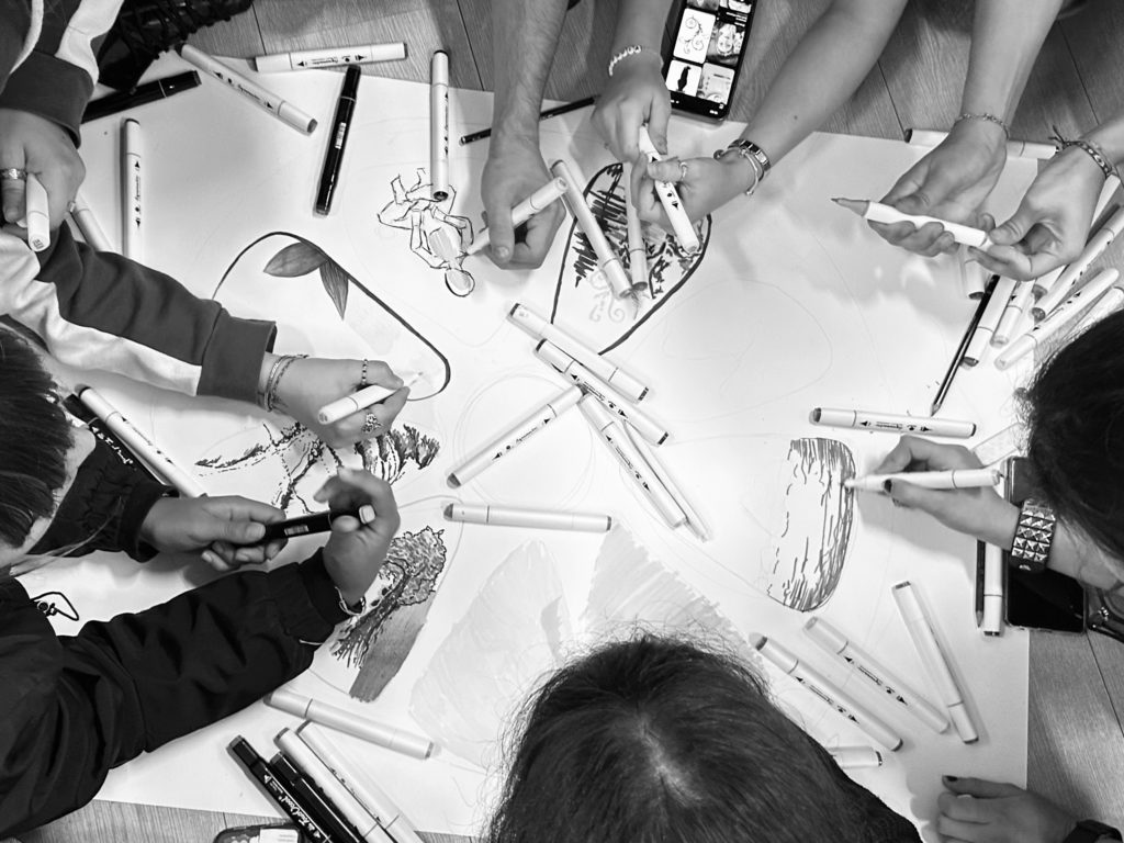 Nel mese di ottobre e in quello di novembre abbiamo accolto due artisti in residenza, Marie-Pierre Murigneux e Bruno G L PADILHA, e abbiamo guidato, due workshop dedicati all’immaginazione, all’ascolto e alla trasformazione, con la partecipazione attenta e generosa delle studentesse e degli studenti dell’artistico e collaborazione delle insegnanti.